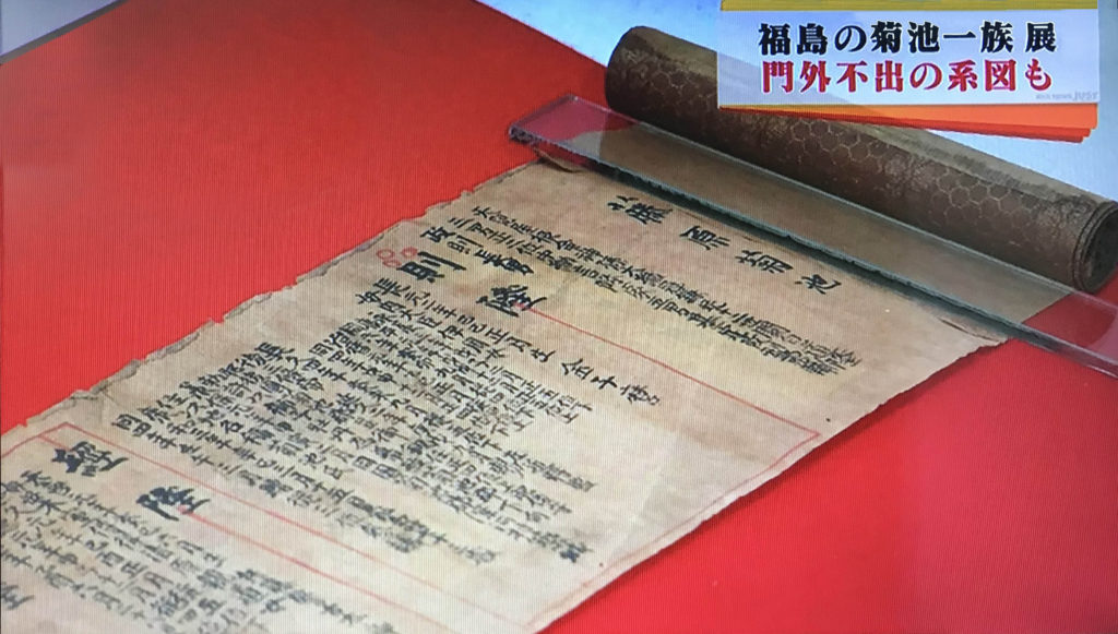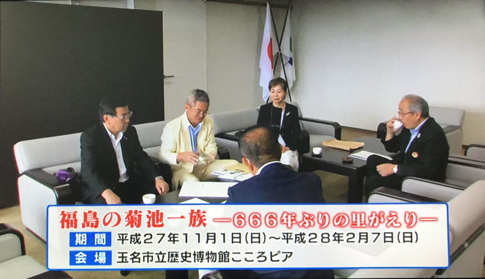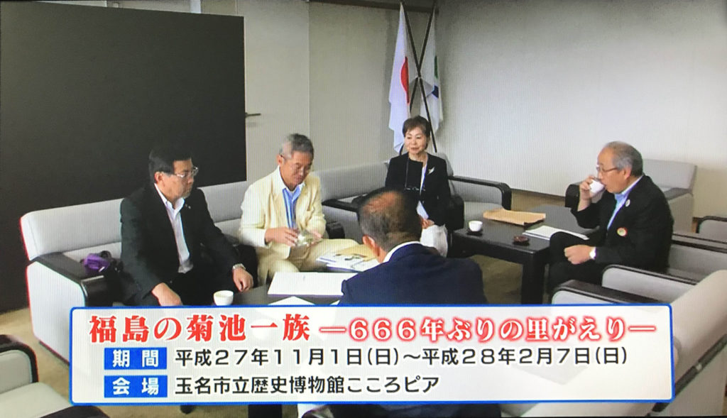 2015年にRKK(熊本放送)の番組「ニュースJUST」にて、2015年玉名市立歴史博物館開催/福島の菊池一族展(玉名市立歴史博物館)について報道されました。