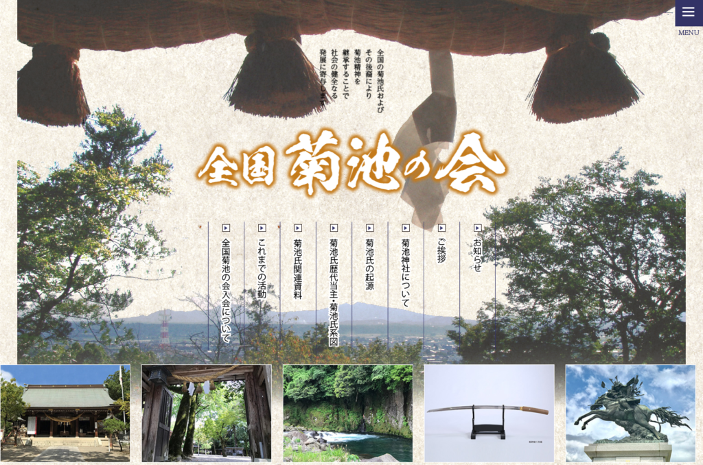 この度、全国菊池の会のホームページを開設させて頂きました。 ホームページでは、菊池氏起源の情報発信をはじめ、弊会の事業など幅広く紹介する内容となっております。 今後も皆様にとって使いやすいホームページを目指して、内容を充実してまいりますので末永くお引き立て頂きますようお願い申し上げます。