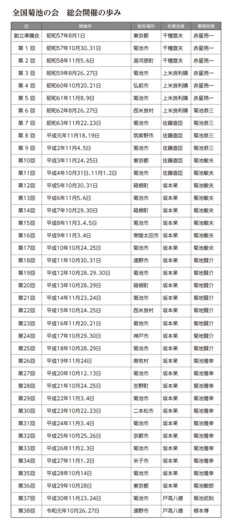 過去に行われた全国菊池の会 総会の一覧を作成し、PDFにいたしました。